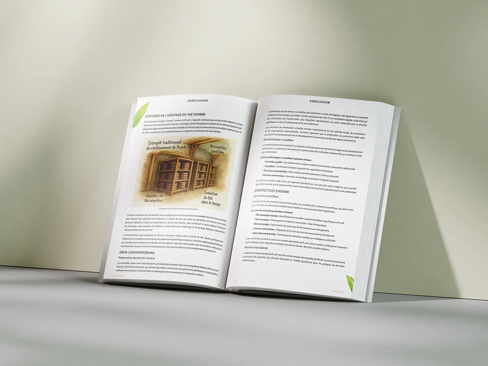 Flétrissage, cuisson, fermentation naturelle ou accélérée (wo dui), pressage en galette, brique ou nid… Le guide explique pas à pas le processus de fabrication si particulier du thé sombre. Il lève le voile sur les différences entre thés crus (sheng cha) et thés cuits (shou cha), sur les critères de qualité et sur l’art délicat de la maturation.