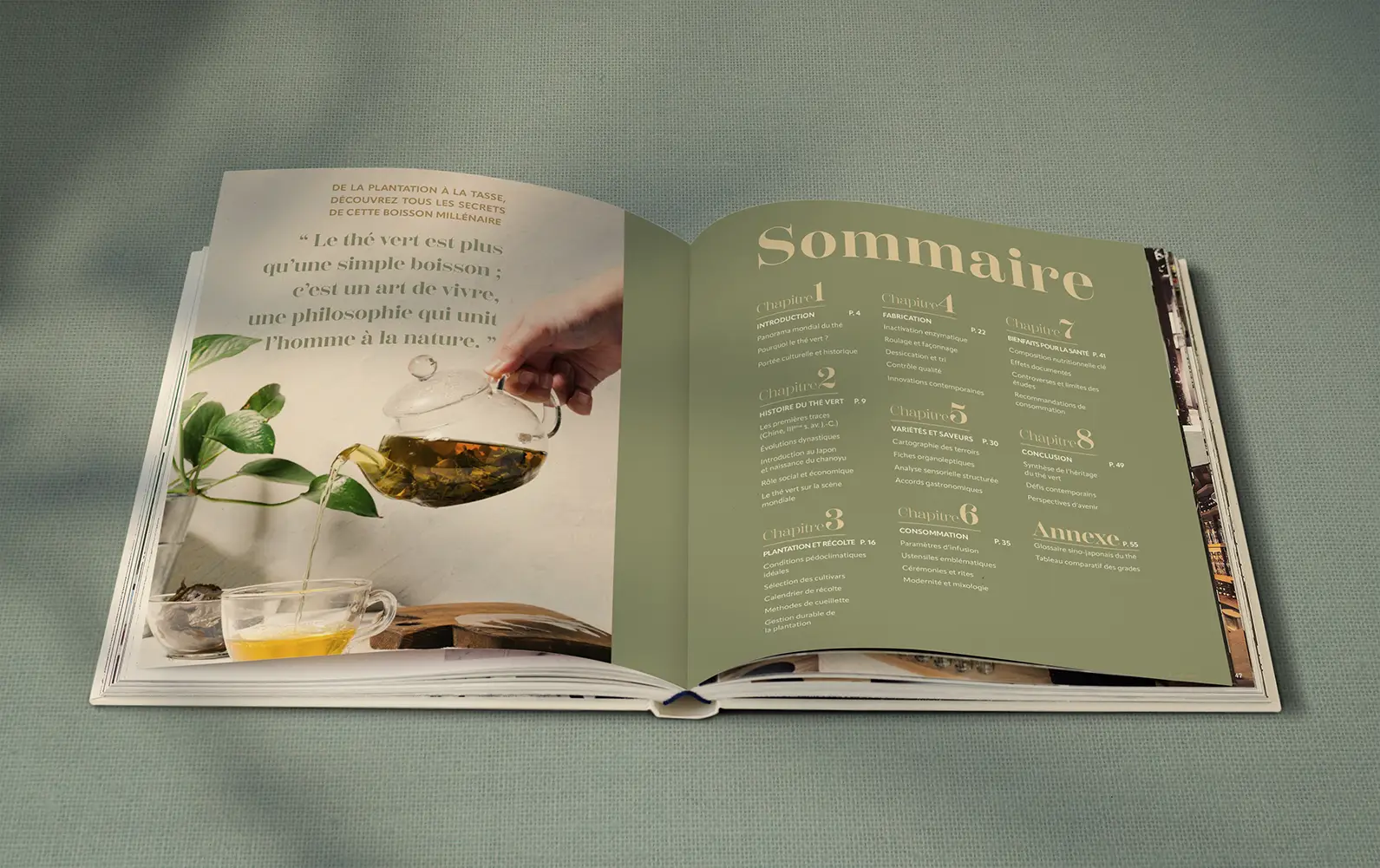 Paramètres d’infusion, ustensiles traditionnels, rituels, accords mets et thés, ou encore mixologie moderne : ce guide donne les clés pour sublimer chaque dégustation. Même la science y trouve sa place avec un regard précis sur les composés actifs du thé vert – catéchines, L-théanine, EGCG – et leur effet sur le corps et l’esprit.